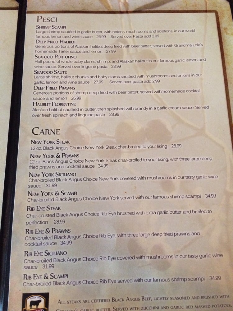 Center cut choice new york steak char-broiled to your liking, with three large deep fried prawns and cocktail sauce. oz.